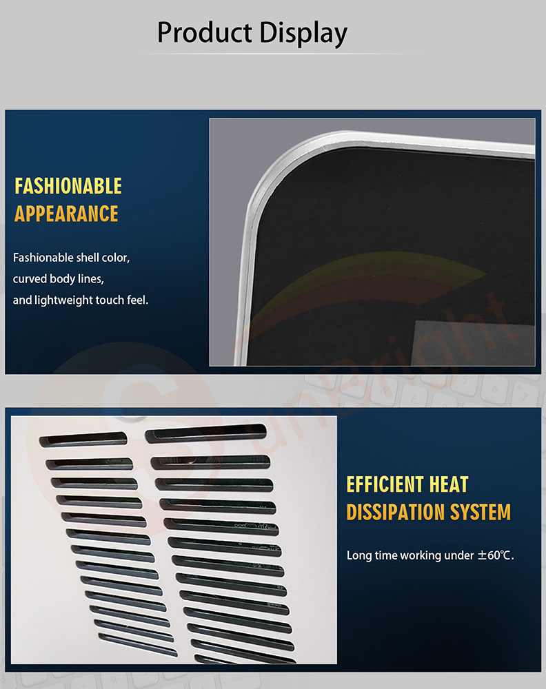 Housing material | Aluminum frame+Front tempered glass, touch screen | |
